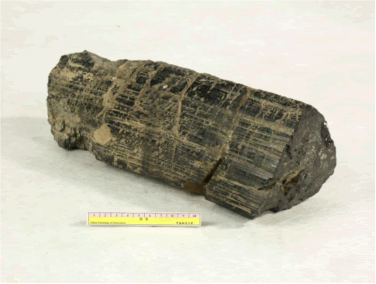 【鑒定特征】 柱狀晶形,柱面有縱紋,橫斷面呈球面三角形,無解理,高硬度為特征。